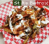 Fresh cut fries topped with cheese, bacon & BBQ sauce