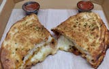 Crispy tortilla with mozzarella and provolone cheese and pizza sauce inside. Load it up with your favorite toppings! Served with sauce on the side.