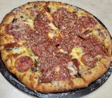 Brier Hill style with sausage, hot peppers, olives, and onions.