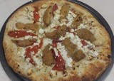 Garlic oil sauce topped with sausage, greens and hot peppers! With mozzarella cheese.