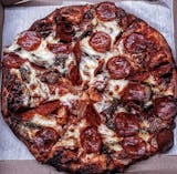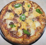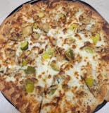 Brier Hill style with hot peppers, sausage, and pepperoni.